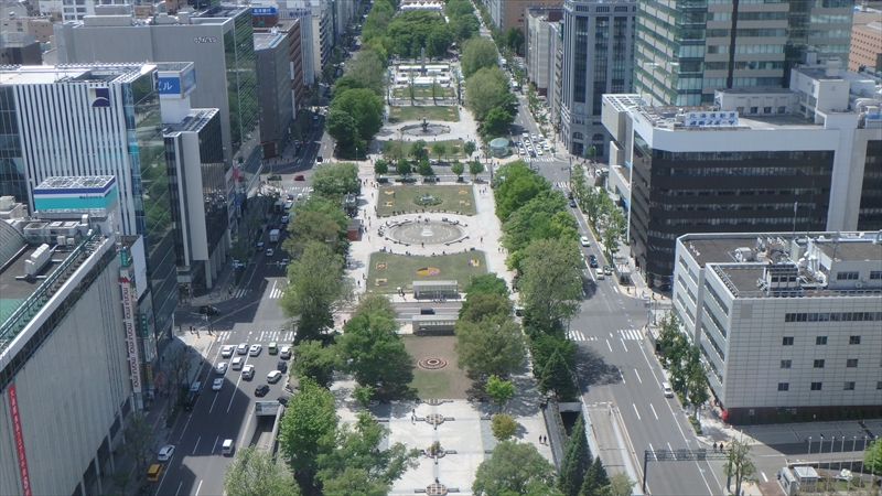 展望台(高さ約90m)からは大通公園や札幌市街を一望できます。