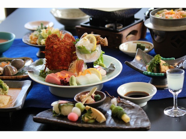 南紀月の瀬温泉 ぼたん荘では清流古座川の天然鮎やカニ、黒潮の海で獲れたお刺身や
