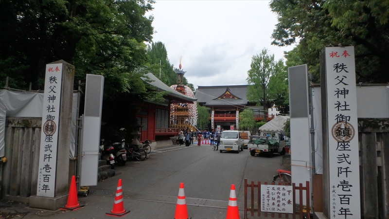 秩父神社へ向かう途中、まさかの大渋滞。抜け道もなく、予定より約2時間オーバーしてしまいました。後で知ったのですが、天皇陛下が全国植樹祭式典にご出席のため交通警備の看板も見かけましたが事故渋滞だったようです。