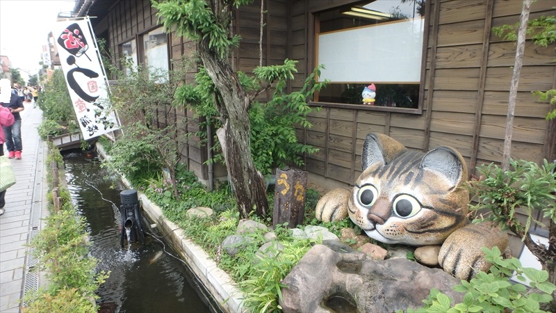 途中、小川を見つめる巨大な猫のモニュメントも発見。思わず立ち止まってしまいました。